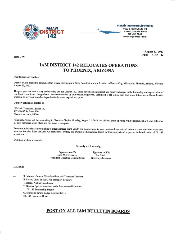 Notice of Nominations and Elections for IAMAW Air Transport District Lodge 142